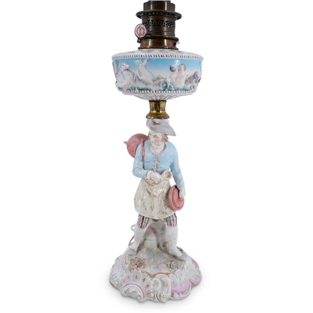 German Hand Painted Porcelain Lamp