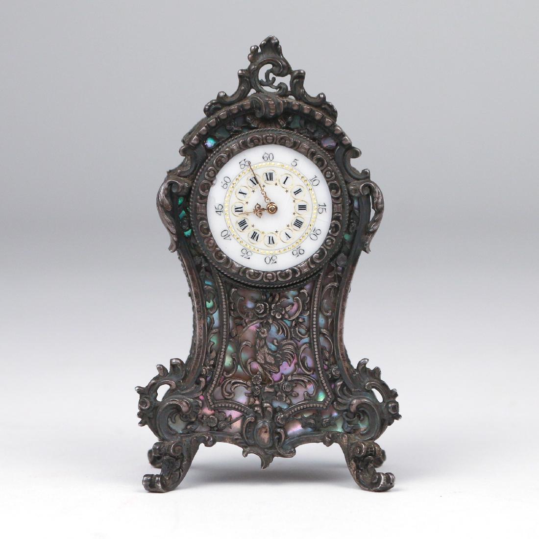 GERMAN MINIATURE '800' SILVER CLOCK