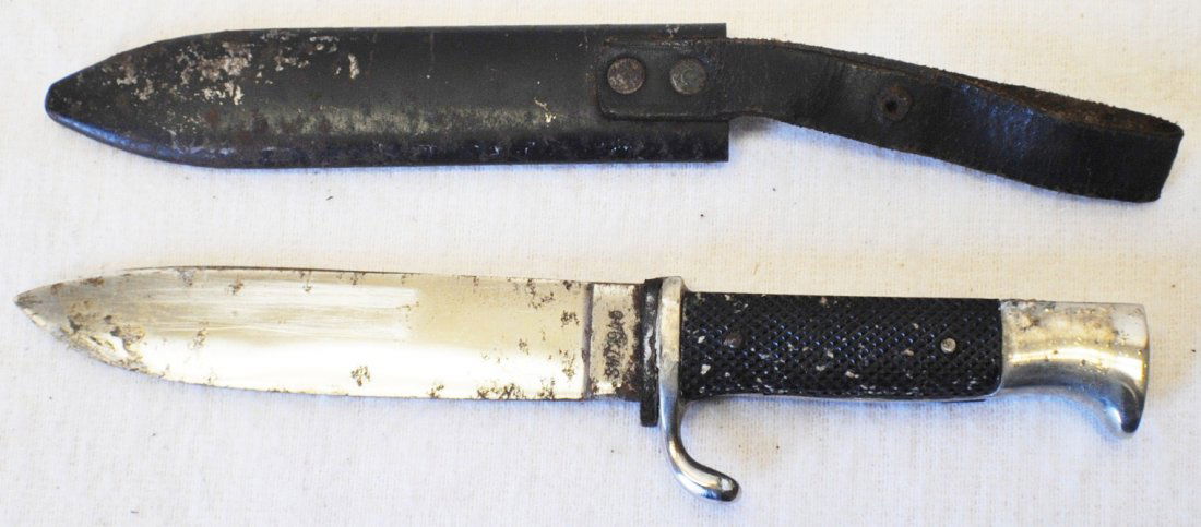 German Hitler Youth Fixed Blade Knife SM1940 5 1/2" blade in a leather sheath.North American Artifact Auctions4.7(237)$55(3 bids)5 days Left
