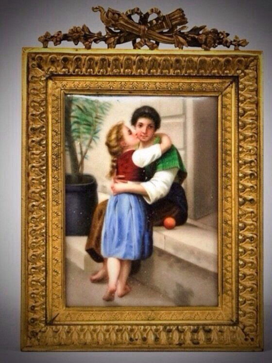 GERMAN PORCELAIN PLAQUE WITH ANTIQUE ORMOLU FRAME