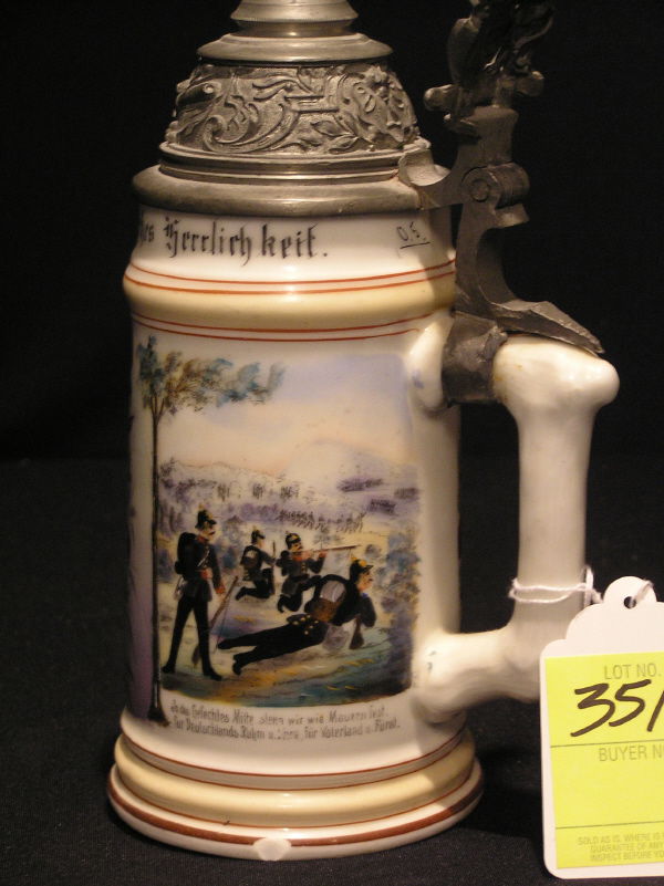 Porcelain Stein, German Regimental Beer Stein, 5.Comp.9.Wurtt.Inftr.Regt. No127. Ulm. 1905-1907Apr 04, 2026Porcelain Stein, German Regimental Beer Stein, 5.Eskd.2.Brandeub.Ulan Regt. No11.Saarburg 1898-1901Apr 04, 2026Antique c. 1900 Gertz 1816 German Stein 2L """"Tiroler Leben"""" Pouring Vessel w/ Lid (French Zone)Porcelain Stein, German Regimental Beer Stein, 5.Bad.Inft.-Rgt.Nr.113. Freiburg i. Br. 11.Comp.Apr 04, 2026Porcelain Stein, German Regimental Beer Stein, 3.Art.Regt.12.Fahr.Battr.Munchen 1893-1895Apr 04, 2026German beer stein, "Der Jager und die Jagd", with moose decorations, pewter lined lid, height is2 days LeftVilleroy & Boch Mettlach Stein #2140/1056, German Regimental Beer Stein, Infantry Regiment No. 119Apr 04, 2026Porcelain Stein, German Regimental Stein, 4. Unt. Els. Inf. Reg. No. 143 Mutzig 1901-1903Apr 04, 2026
