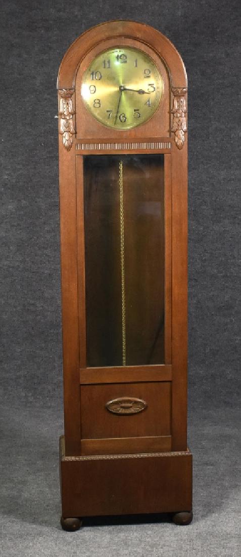 German Round Top Tall Oak Case Clock