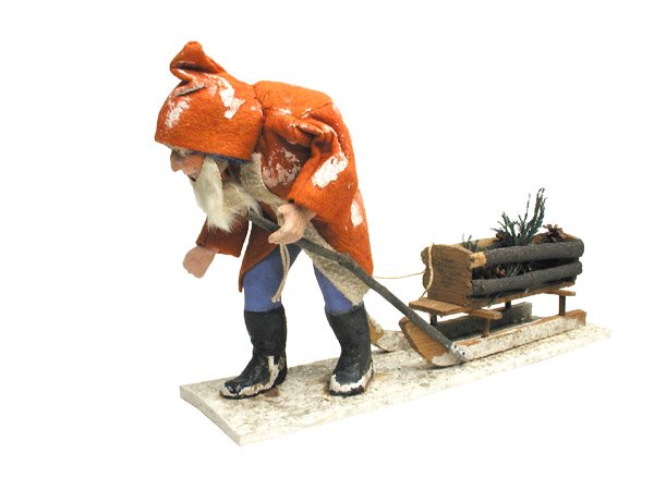SoldGerman Santa Pulling Cart FigureA German figure of Father Christmas pulling a wooden cart. Marked Germany on base. 7in tall x 11-1/2in wide x 3-1/2in deep.See Sold Price