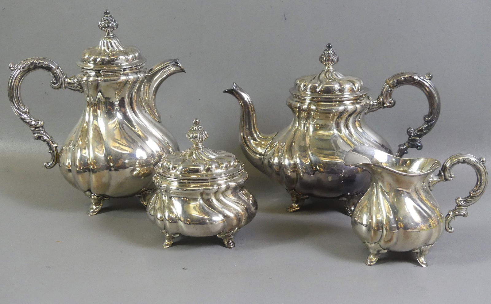 Silverplated Teapots, Cream and SugarFeb 20, 2026(5) ENGLISH ELKINGTON & CO. STERLING SILVER TEA & COFFEE SERVICEFeb 22, 2026A Sterling Silver Five Piece Tea Set by International6 days LeftVintage WM A Rogers Silverplated Tea Pot & CreamerFeb 25, 2026German Sterling Silver Tea and Coffee Service3 days LeftReed & Barton Silver Plated Tea Service6 days LeftSilver Plated Tea Service Grouping (6)Mar 07, 2026(5) Pc. Sterling Silver Tea Set5 days LeftAmerican Silver Five-Piece Tea and Coffee Service3 days LeftDerby Silver Co. Silver Plate Tea Service, 4 Pcs.Mar 12, 2026Christofle Silver-Plated Tea Service3 days LeftVictorian Silver Tea Service, Mark of Martin, Hall & Co.3 days LeftVintage German .835 Silver Coffee and Tea Service SetJul 13, 2025Gorham Plymouth Sterling Silver Tea Service3 days LeftGorham Sterling Silver Tea Service3 days LeftFederal Coin Silver Teapot and Sugar Bowl, with Sterling Creamer3 days Left