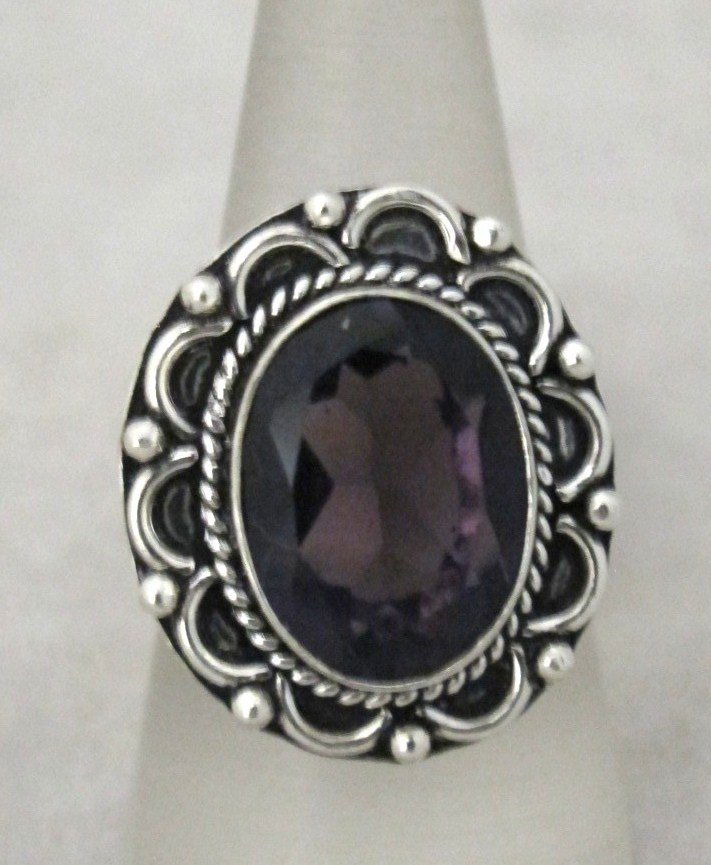 German Silver And Lab Created Amythest Ring