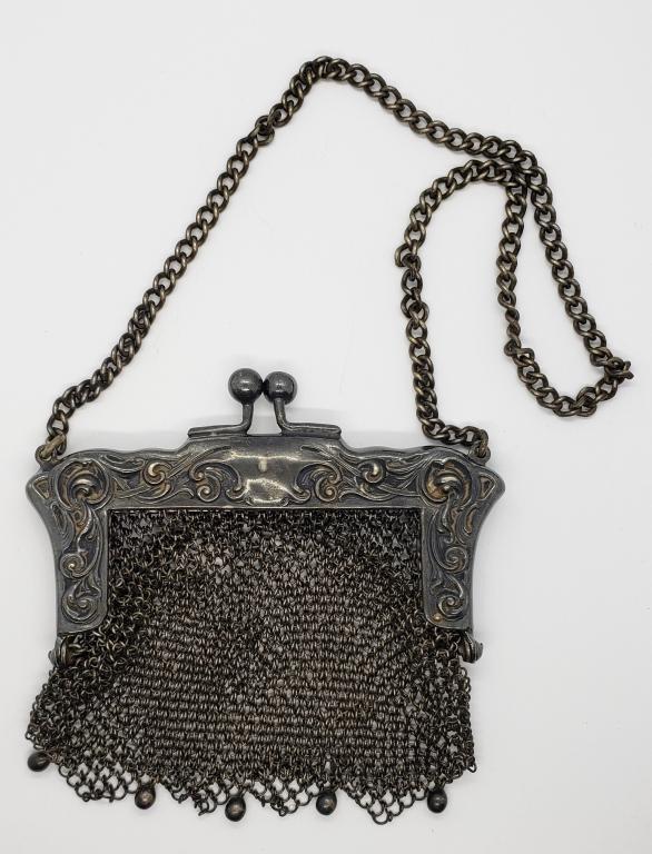 Sterling Chain Mail Mesh Coin Purse Vintage Lot# DG 2313 days LeftArt Deco Mesh Purse Collection 800 Sterling Silver Whiting & Davis etcFeb 22, 2026German Silver Chain Mail Mesh Purse Vintage 1930's Signed Lot# DG 6043 days LeftSterling Silver 925 Vintage Coin Mesh Purse Chain Mail Lot# DG 7553 days LeftVintage Sterling Silver Chainmail Two Compartment Coin Purse/ PendantAntique Art Nouveau Mesh Chain Sapphire Purse 14K Yellow Gold, 157.34 Grams19th C. Hand Made 800 Silver Mesh Evening Bag Purse6 days LeftA Hand Made Sterling Silver Mesh Evening Bag Purse6 days LeftVictorian Mesh Purse German Silver 9 in. x 5 1/2 in.; Victorian Mesh Purse 3 1/2 in. x 6 1/4 in.Feb 15, 2026Sterling Silver Mesh PurseFeb 14, 2026Solid Sterling Silver Large Mesh Evening Bag6 hrs LeftEvening Bag, Elaborate German Silver, 800 Purity, Black Bag With Silver Beading Overlay6 hrs LeftVintage Mesh and German Sterling Frame Purse, with Cherub Motif FrameFeb 15, 2026Vintage Silver Chainmail Purse1 day LeftEvening Bag, Beaded Mesh With Original Silk Lining6 hrs LeftSilver Mesh Evening Bag Marked Whiting With Original Lining6 hrs Left