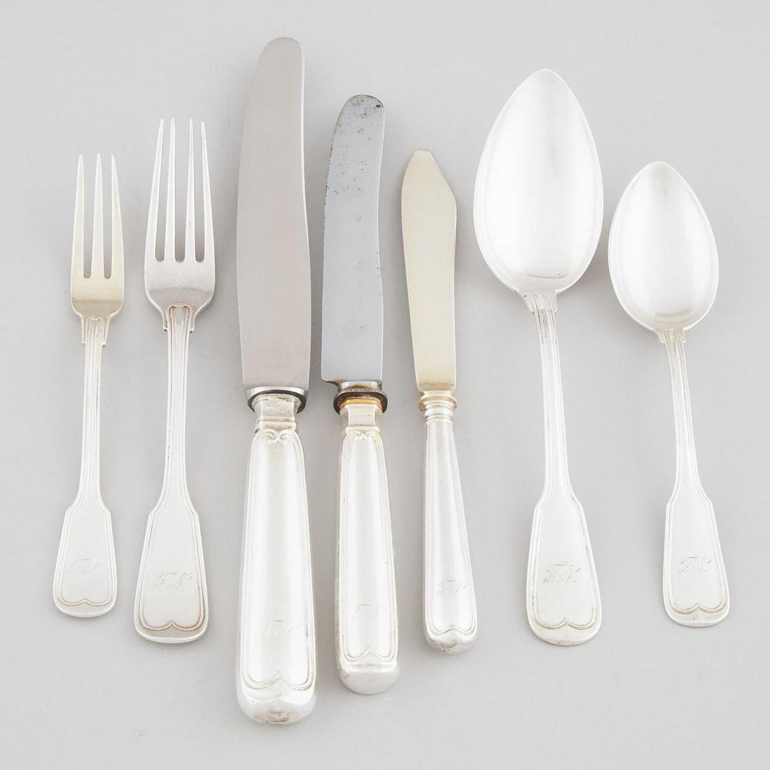 German Silver Fiddle and Thread Pattern Flatware, J.W. Paul