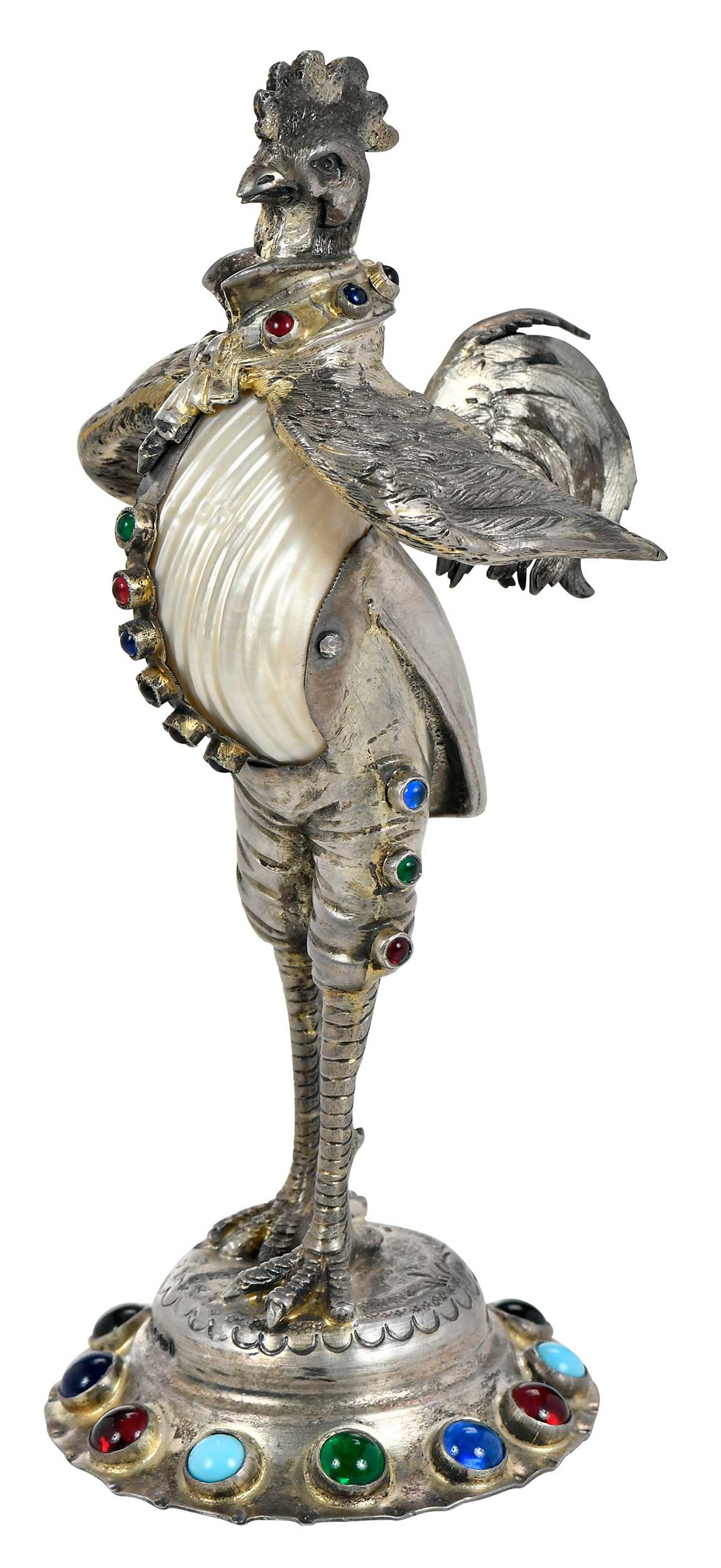 German Silver Jeweled Turbo Shell Rooster
