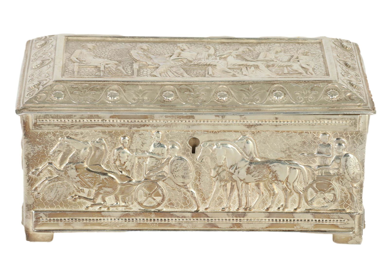 Vintage Silver Plate Jewelry BoxMar 10, 2026Jeweled Decorative Casket with Painted Lid Signed "Desvarreoy"3 days LeftGerman Silver BoxMar 14, 2026ANTIQUE FRENCH METAL ROCOCO SCENE JEWELRY BOX6 days LeftA WMF German Art Nouveau jewelry casket, circa 1905Mar 15, 2026Large 19th Century French Figural Silver Plated Jewelry Box4 days LeftArt Deco French Sterling Silver Ram Motif Box 1925 KISS FMar 03, 2026Qajar Silver and Silver-Gilt Cigarette Box, PersiaMar 15, 2026Antique Continental Silver Tavern Scene Sterling Silver Trinket Box5 days LeftSilver Tobacco Box2 days LeftAntique Berthold Muller English Vermeil Sterling Silver BoxMar 10, 2026Antique SP Engraved with Dragons Hinged BoxMar 08, 2026An Erhard & Sohne Renaissance Revival brass boxMar 10, 2026German Jugendstil Brass Hinged BoxApr 14, 2026An Exquisite Silver Landscape and Figure Pattern BoxMar 15, 2026ANTIQUE SILVER PLATED DINNER TRAY SETMar 08, 2026