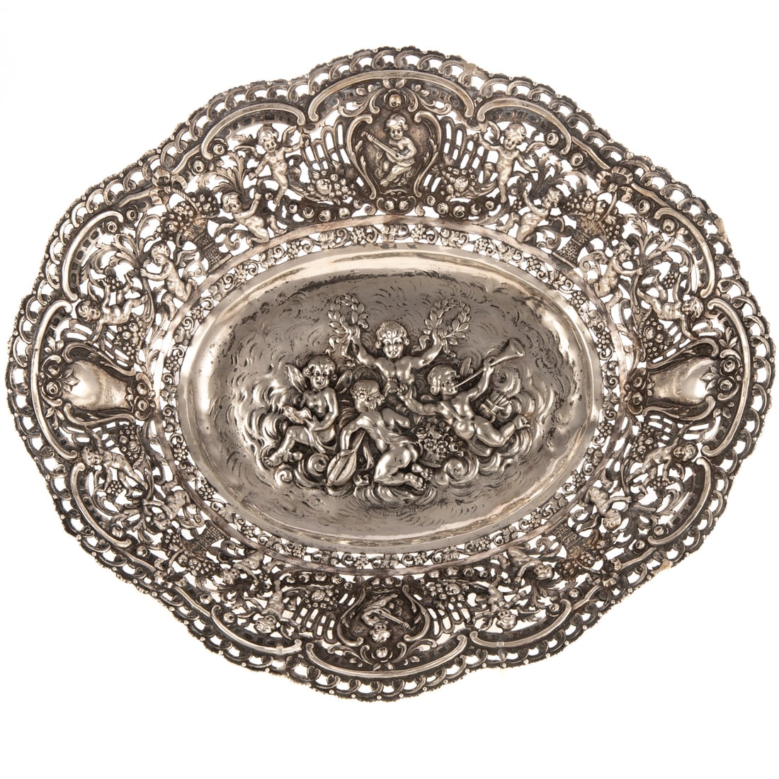 Ornate German 800 Silver Pierced Bowl with Putti