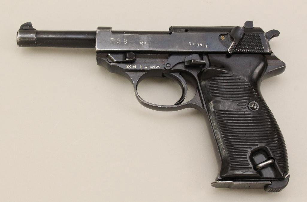 GERMAN P38 LATE WAR WALTHER SVW 45 PISTOL 9 MMMar 21, 2026WW2 ERA WALTHER P38 SEMI AUTOMATIC PISTOL 9MMMar 21, 2026WWII GERMAN WALTHER ac CODE P38 9mm CALIBER PISTOLMar 22, 2026WALTHER MODEL P38 SEMI AUTOMATIC POST WAR 9MMMar 22, 2026WWII GERMAN WALTHER ac CODE P38 9mm CALIBER PISTOLMar 22, 2026WWII GERMAN ac CODE WALTHER MODEL P38 9mm PISTOLMar 22, 2026Excellent WWII German 1945 Mauser P38 "BYF/44" Semi-Automatic 9mm PistolWWII GERMAN ac 45 CODE WALTHER P38 9mm CAL PISTOLMar 22, 2026POST WAR WALTHER P38 COLD WAR 12/59 DATE 9MMMar 22, 2026WWII GERMAN ac CODE WALTHER MODEL P38 9mm PISTOLMar 22, 2026German Walther, Model P38, Semi-Auto Pistol, 9 MM caliber, SN 4591 with all exterior numbersMar 29, 20261940 GERMAN 42 CODE MAUSER P08 9mm LUGER PISTOLMar 22, 2026WWII GERMAN ac CODE WALTHER MODEL P38 9mm PISTOLMar 22, 2026WW2 ERA PO8 LUGER / MAUSER / BYF 9MM SEMI AUTOMar 21, 2026MAUSER C96 BOLO SEMI AUTOMATIC PISTOLMar 21, 2026WWII GERMAN byf CODE MAUSER MODEL P38 9mm PISTOLMar 22, 2026