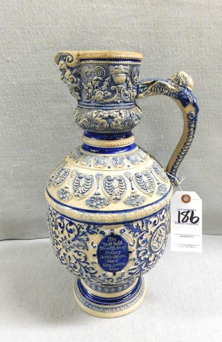 TUSCAN STYLE CERAMIC VASE VINTAGE DECOR97 Lots AwayGerman Salt Glazed Cobalt Blue Decorated Handled 2 L Stoneware Pitcher of the Westerwald RegionMar 16, 2026Hand-Painted Blue and White Handled Ceramic Vase17 hrs LeftStaffordshire Historical Blue Flow Blue Pitcher4 days LeftA Chinese Dragon-decorating Blue and White Porcelain Fortune Ewer4 days LeftGlobular jug with marsh flowers. Hanau, early 18th century.Mar 20, 2026A Chinese Blue and White Figure Teapot MIng Dynasty Chongzheng Period 1611-1644Mar 27, 2026A Chinese Story-telling Blue and White Porcelain Fortune Ewer4 days LeftA RETICULATED BLUE AND WHITE STONEWARE EWER, LÊ DYNASTY, LATE 15TH CENTURY, FROM THE HOI ANMar 12, 2026Rare Chinese Blue and White TankardMar 28, 2026Chinese fine b/w vase20 hrs LeftGerman Salt Glazed Cobalt Blue Decorated Handled 2.5 L Stoneware Pitcher of the Westerwald RegionMar 16, 2026Vintage Oriental Blue and White Teapot Novelty Decorative Ornamental Ceramic Teapot Round Chinese DrGerman Westerwald Salt Glaze Pitcher23 hrs LeftA blue and white consecrated dragon pattern pot of the Ming DynastyMar 22, 2026A Ming Yongxuan blue and white pot3 days Left