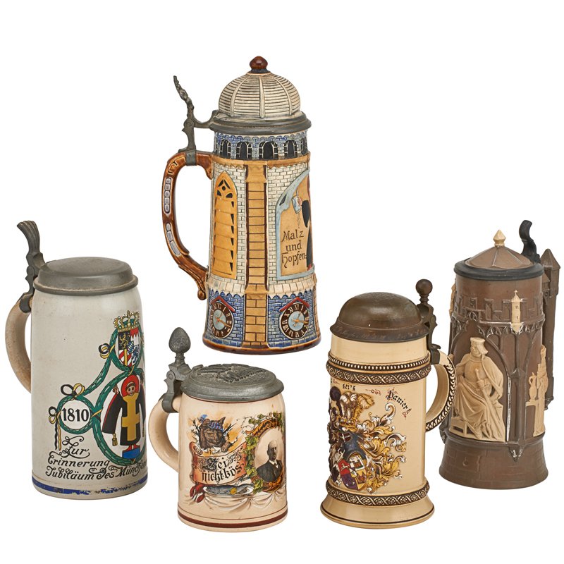 Lot of misc. porcelain, beer stein4 hrs LeftLot of 4 Antique Ceramic Pitchers & Crock5 days LeftVintage West Germany Ceramic Beer Mugs Lot of 2, Ornate Pewter Lids, German MotifsFeb 23, 2026LOT OF GERMAN POTTERY, STEIN / MUGFeb 26, 2026(3) DOULTON PITCHERS/VASE W/FLORAL DESIGN, 19/20TH C.5 days Left(5) FRENCH PROVINCIAL STONEWARE HANDLED PITCHERS5 days Left(6) GERMAN MATTHIAS GIRMSCHEID 'LOVERS' BEER STEINS & PITCHER #2505 days LeftAnheuser-Busch "B" Series Limited Edition "King of Beers" Ceramic Stein & MugFeb 23, 2026King Werk German & Albany Beer Stein Lidded 2pcsFeb 26, 2026Mettlach Stein and Faience Pottery TankardFeb 27, 20262 Vintage Stoneware SteinsMar 04, 2026(2) METTLACH POTTERY STEINSFeb 24, 2026Five Assorted Steins and One Porcelain Liquor Bottle, Jimmy Carter ProvenanceFeb 25, 2026Group of 4 Ceramic Beer SteinsMar 07, 2026FOUR DECORATIVE BEER STEINS AND PEWTER STYLE MUGS7 hrs Left3 German stoneware Mineral water bottlesMar 09, 2026