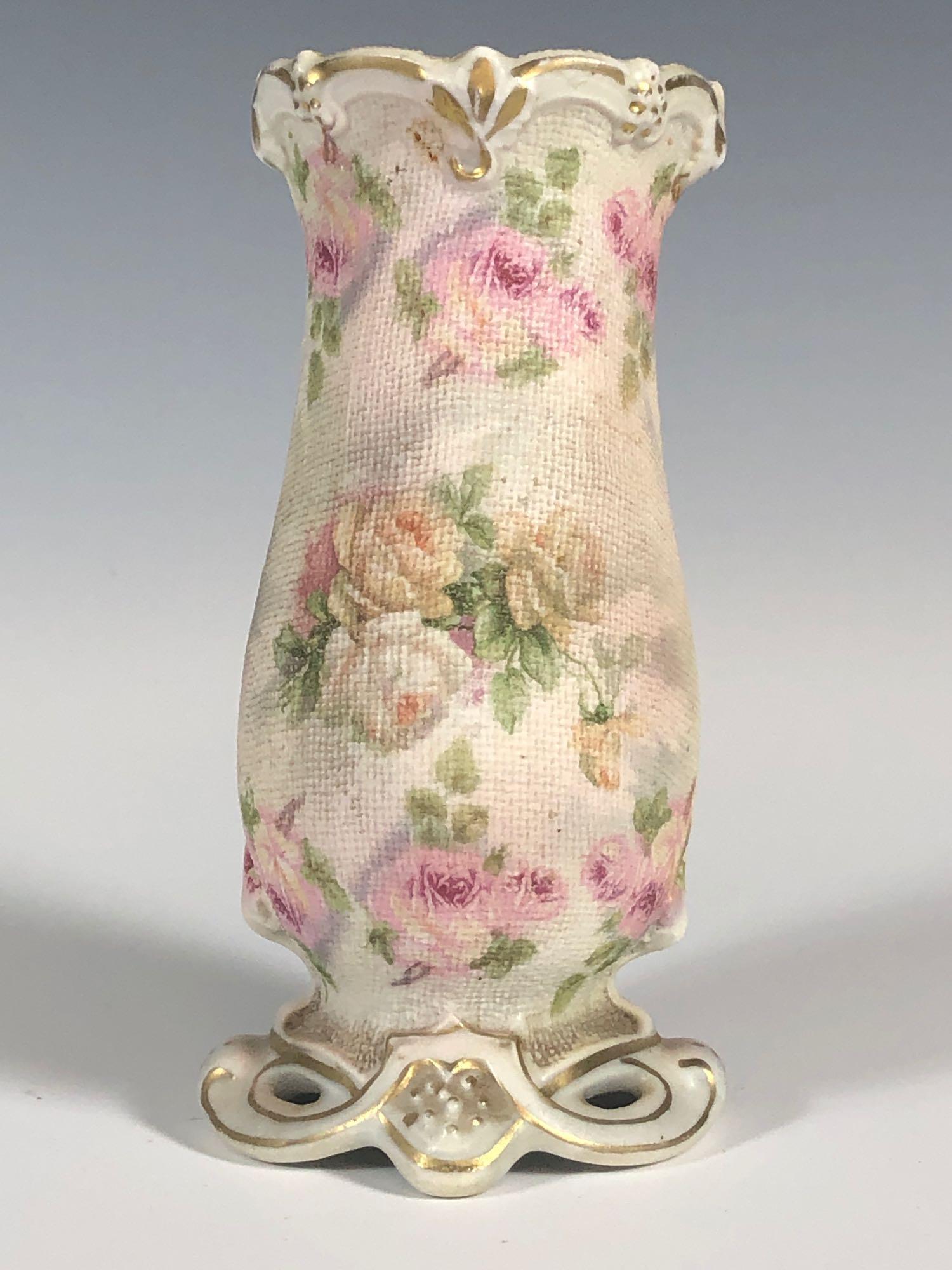 German Tapestry Texture Porcelain HatPin Holder