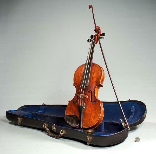 German violin and bow in a fitted case