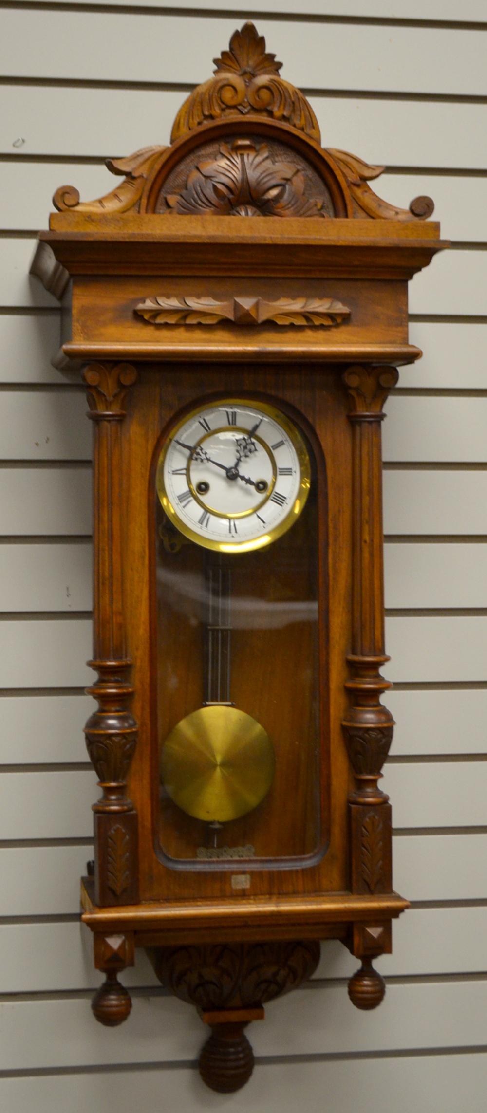 Vintage New Haven Gingerbread Mantel ClockMar 14, 2026Late 19th Century German Walnut Wall Clock in the Style of Gustav Becker4 days LeftVienna Mahogany Regulator Wall Clock, ca. 1900May 07, 2026Exceptional Winterhalder & Hofmeier Gothic Revival Walnut Bracket Wall Clock, Eight-Day Chain Fusee4 days LeftWalnut Shelf Clock20 hrs LeftGERMAN GRANDFATHER CLOCK4 days LeftGerman Wood Wall Clock, Mother Of Pearl Accents With Enamel Face & Pendulum, 32"h x 7"w7 days LeftGerman 3-Weight Wall Clock with Moon Phase & Musical AutomataMar 15, 2026German Triple-Weight Longcase Clock (20th Century)Mar 15, 2026Forestville Oak Wall Clock with PendulumMar 15, 2026Sligh Inlaid Mahogany Grandfather Clock with Beveled Glass and FinialMar 19, 2026Elegant wooden wall clockMar 15, 2026Pillar & Scroll mantle clock, mahogany case, eglomise bottom panel in door, paint decorated face and6 days LeftAntique Walnut Shelf Clock by Waterbury20 hrs LeftLovely Vintage Wood and Brass Mantel ClockMar 14, 2026Federal Inlaid Mahogany Tall Case Clock, with Automaton Movement by Aquila BarberMar 13, 2026