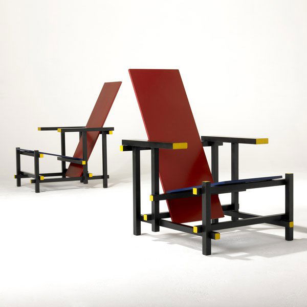 GERRIT RIETVELD Pair Red-Blue chairs