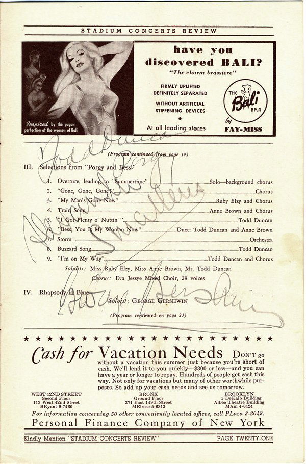 GERSHWIN, GEORGE - S. program, also T. Duncan