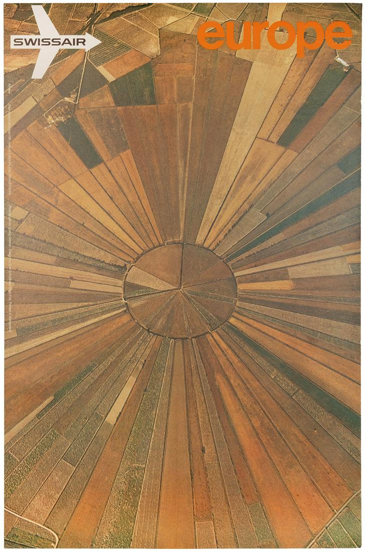 SoldGerster, Georg (Swiss, 1928-2019), Emil Schulthess andGerster, Georg (Swiss, 1928-2019), Emil Schulthess and Hans Frei. Swissair / Europe. Switzerland, ca. 1972. Color photo-offset travel poster with an airview of 13th century star-shaped drainage in FraSee Sold Price