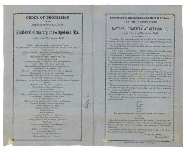 John F. Kennedy – Presidential Inauguration – Official Schedule – 1961 Inaugural EJohn F. Kennedy – 1961 Presidential Inauguration Ceremonies Program – Official ProgramJohn F. Kennedy – 1961 Presidential Inauguration Ceremonies Program – Official ProgramAbraham Lincoln – Civil War Bereavement Letter – 1933 Printed BroadsideLongstreet's Assault, Gettysburg Monument, etc.Mar 02, 20262nd Lieutenant Hans Peter Jorgensen AppointmentMar 02, 2026Robert Todd signed Lincoln Gettysburg addressMar 02, 2026149th Pennsylvania Bucktails Reunion Documents .Mar 02, 2026Massachusetts Civil War Pay Document, etc.Mar 02, 2026Quartermaster's Store, & other Mass DocumentsMar 02, 2026Order of Procession for Abraham Lincoln's FuneraFeb 26, 2026Lt. Elson Misner NY Infantry Battle of the WildernessMar 02, 2026Robert A. Marshall Civil War 28th VA Parole Doc.Mar 02, 20261895 Cotton States and International Exposition Pamphlet U.S. Department of AgricultureFeb 26, 2026Abraham Lincoln Signed Naval Commission. One parFeb 26, 2026Broadside to soldiers who died in service, speechesMar 02, 2026