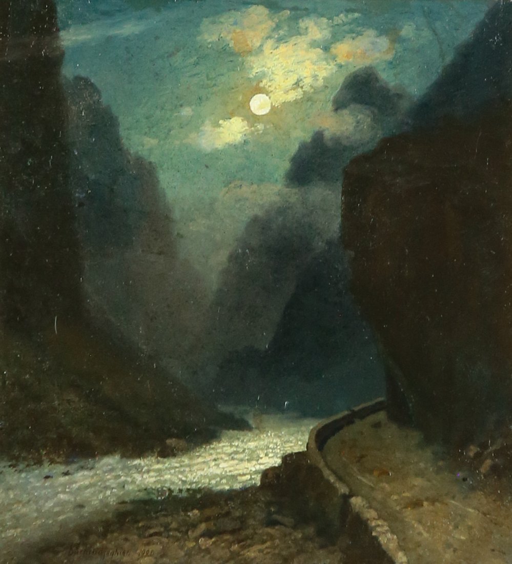 SoldGEVORG BASHINJAGHIAN (ARMENIAN 1857-1925)GEVORG BASHINJAGHIAN (ARMENIAN 1857-1925)Mt. Aragat oil on board 24 x 42 cm (9 1/2 x 16 1/2 in.), framed dimensions: 40 x 59 cm (15 3/4 x 23 1/4 in.) signed lower right CONDITION Observed in frame, thSee Sold Price
