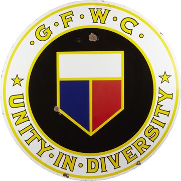 G.F.W.C. Porcelain Sign Featuring Shield Logo.