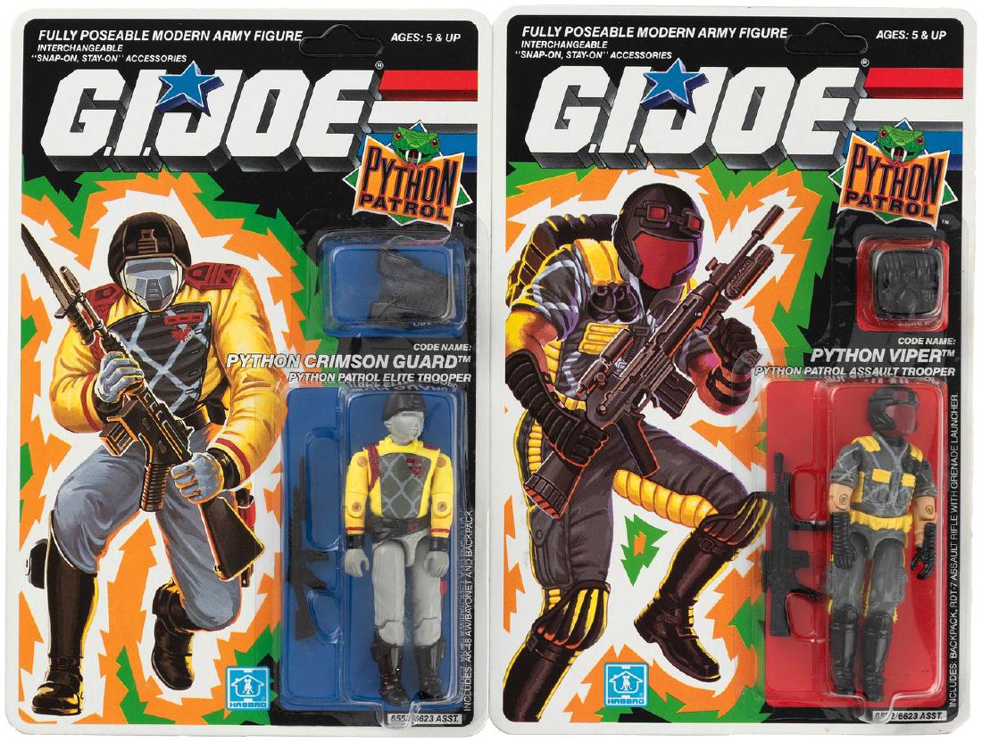 G.I. JOE PYTHON PATROL SET OF SIX FIGURES ON CARDS.