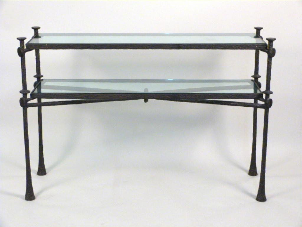 Giacometti Style Modern Bronzed Iron Two-Tier Console Table with Glass ShelvesFeb 28, 2026Giacometti Style Patinated Iron and Glass Drinks Table7 days LeftElegant Scrolled Iron Base Glass Top Console Table 48"3 days LeftArchitectural Iron Console Table with Glass TopFeb 27, 2026A BRASS AND IRON CONSOLE TABLE HAVING CORINTHIAN CAPITALS AND A BEVELED GLASS TOP C 1970.Feb 25, 2026FRENCH BRONZE AND IRON MIRRORED TOP COFFEE TABLE IN THE MANNER OF ANDRE ARBUS C 1950.Feb 25, 2026French Art Deco Bronze and Glass Cocktail Table Attributed to Maison BaguesMar 02, 2026BRONZE AND GLASS DOUBLE PEDESTAL COFFEE TABLE C 1960.Feb 25, 2026Two-Tier Wicker & Glass Waterfall Console TableFeb 26, 2026Glass Top Table With Metal BaseMar 06, 2026Glass and Metal Dining and Console Tables6 days LeftBRASS AND GLASS TWO TIER OCCASIONAL TABLE C 1970.Feb 25, 2026STEEL, BRASS AND LUCITE END TABLE HAVING GLASS TOPS C 1975.Feb 26, 2026FRENCH STEEL AND BRASS COFFEE OR END TABLE HAVING A THICK GLASS BANDED TOP C 1965.Feb 25, 2026Vintage Iron Base Thick Glass Top Coffee TableMar 02, 2026Forged Iron & Glass Contemporary Coffee TableFeb 27, 2026