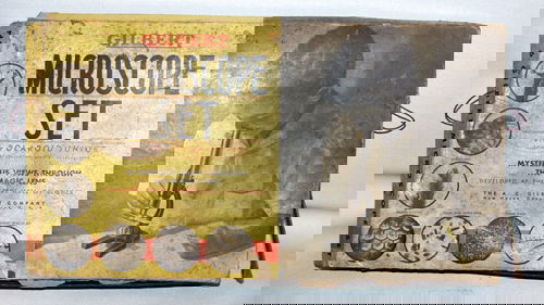 GILBERT MICROSCOPE SET, C.1950, W 28", H 4", D