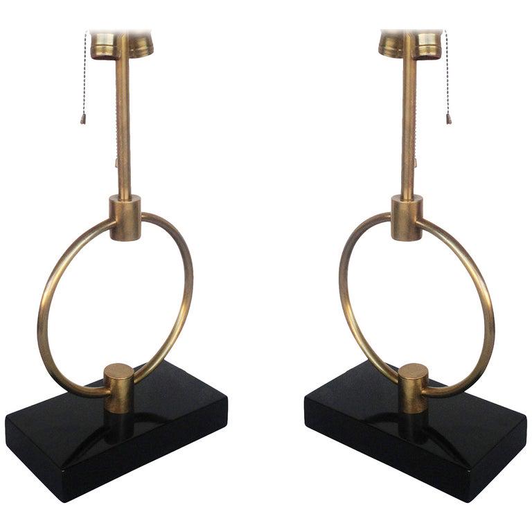 Gilbert Rohde Style Brass Ring Table Lamp Pair