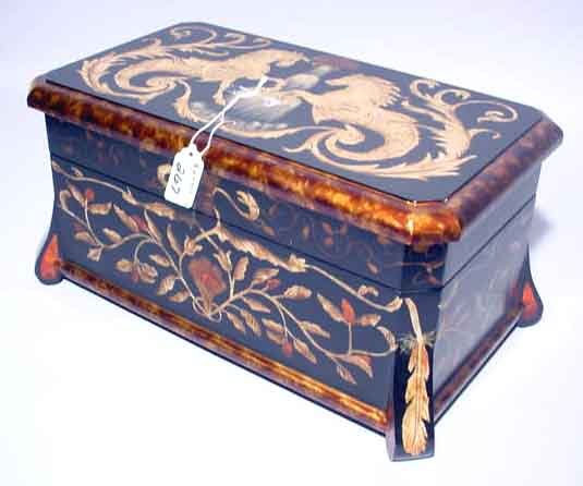 Indian Brass Mounted Carved Wood ChestMar 26, 2026A Charles II style iron mounted brass studded leather covered trunk, antique and later elementsFeb 25, 202618th/19th century Korean mother of pearl inlay lift top box. Mother of pearl and brass inlay on skinMar 01, 2026A Tang Dynasty silver-gilt inlaid treasure scripture boxFeb 28, 2026Antique Swiss Cylinder Music BoxFeb 28, 2026A Gorgeous Gilt-Silver 'Buddha Shakyamuni' Box With A Scroll Of Buddhist SutrasMar 06, 2026Vintage Celluloid Hard Plastic Asian Style Lidded Embossed Jewelry BoxJul 21, 2025Antique Polyphon Disc Music Box with Illustrated Lid InteriorFeb 23, 2026Chinese Brass-Mounted Coromandel Lacquer Traveling BoxFeb 26, 2026ANTIQUE EUROPEAN WOODEN MUSIC BOX6 days LeftAntique Chinese Lacquered Wood Box With Ceramic InlayFeb 22, 2026Vintage Chinese Wooden Jewelry Box with Brass Mounts, Shanghai4 hrs LeftRosewood inlaid with shell large official box, treasure box, storage box.Mar 06, 2026Antique Cylinder Musical Box with Inlaid Wooden CaseFeb 23, 2026Maitland Smith Tessellated Jewelry BoxFeb 27, 2026Antique Swiss Cylinder Music BoxFeb 28, 2026