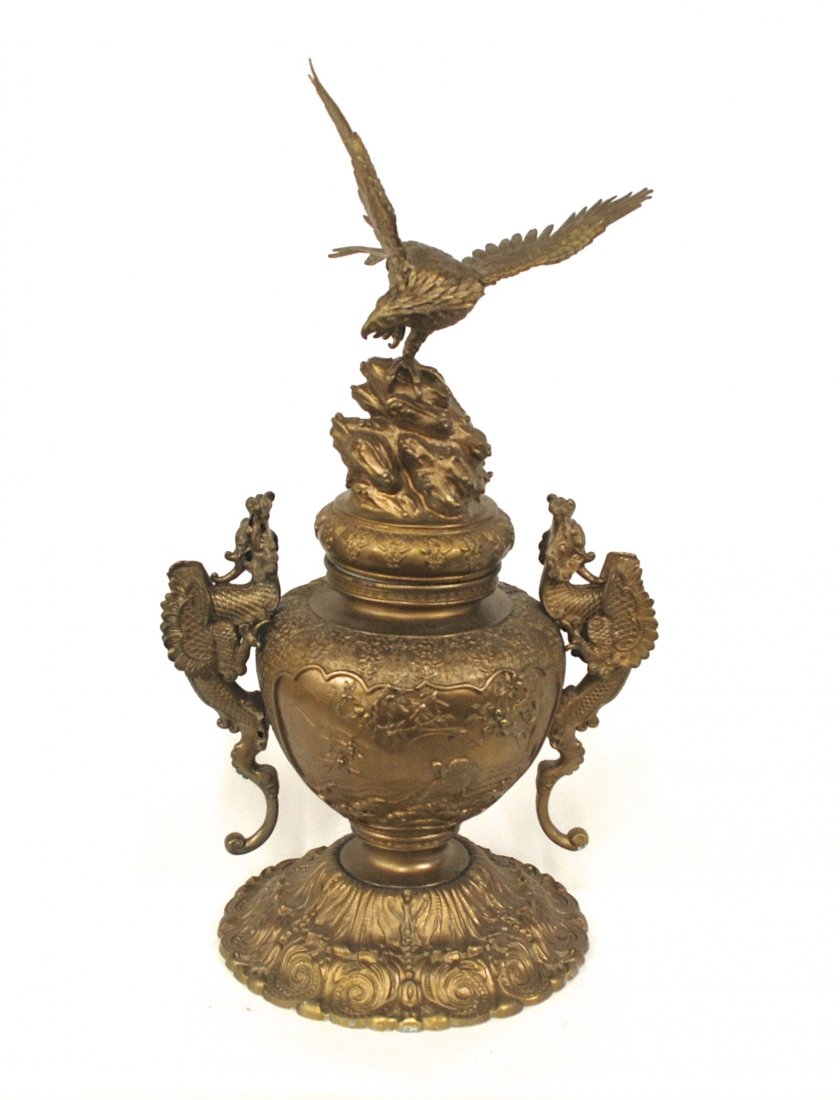 Bronze Censer with Dragon Relief & Qilin LidFeb 28, 2026Meiji Period Large Bronze Urn w/ Dragon Relief3 days LeftAntique Gilt Bronze Dragon Turtle Incense Burner with Cranes, 1625gMar 03, 2026A Japanese Bronze Urn with Birds and Flowers8 hrs LeftA GOLD AND SILVER INLAID BRONZE MOUNT INCENSE BURNER WITH COVER BOSHANLUMar 01, 2026Japanese Meiji Bronze Lidded Incense BurnerMar 10, 2026ANTIQUE FRENCH BARBEDIENNE NEO CLASSICAL BRONZE VASEFeb 28, 2026An Exquisite Gilt Bronze Auspicious Beast Pattern Dragon-head VaseMar 14, 2026Warring States/Han Period Gilt Bronze Incense Burner Inlaid with Hetian Jade Dragon and PhoenixFeb 28, 2026An Exquisite Gilt Bronze Crane Pattern Double-Ears VaseMar 06, 2026LARGE URN FORM FIGURAL BRONZE NEWEL IN 3 PARTS3 days LeftGilt Bronze Eagle, Provenance Secretary Kenneth Royal, Sr., Truman Cabinet6 days LeftAntique Neoclassical Style Bronze Urn Vase with Ribbon Swag DecorFeb 26, 2026Antique French Empire Style Bronze and Patinated Metal Urn with Eagle Finial3 days LeftAntique Electrified Brass Oil Lamp w/ Eagle CrestMar 11, 2026An Exquisite Gilt Bronze Auspicious Cloud and Crane Pattern Double-Ears VaseMar 11, 2026