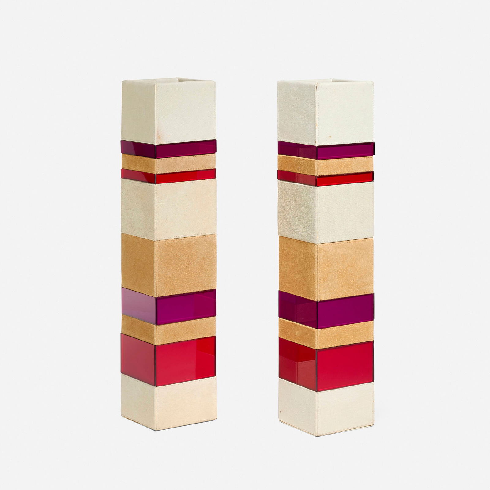 SoldLot of 2 overlay vases and pair of pressed glassLot of 2 overlay vases and pair of pressed glass compotes. Condition: good.See Sold Price