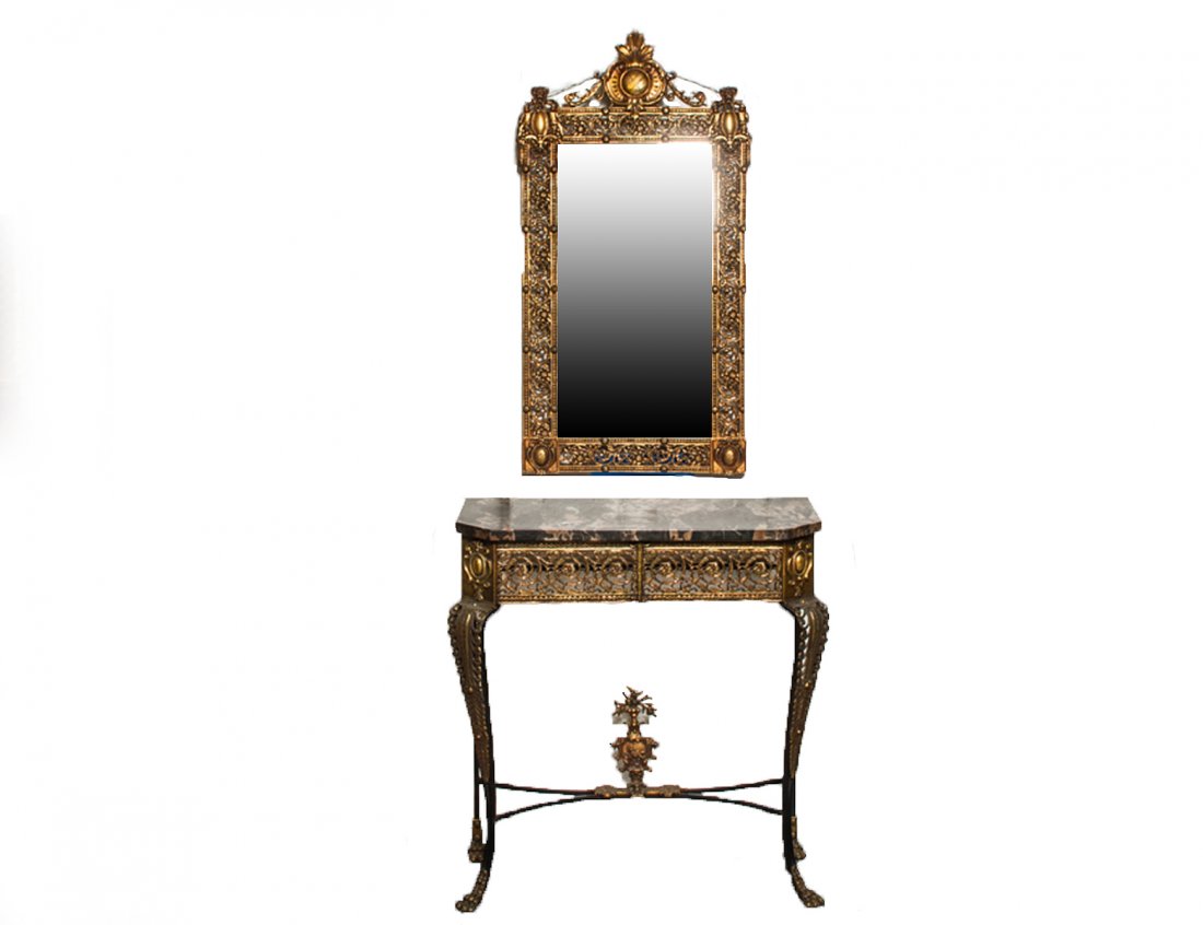 19th C. French Empire Style Bronze, Marble Top Console Mirror1 day LeftLOUIS XVI STYLE GILTWOOD CONSOLE AND MIRRORMar 07, 202619TH C HEAVILY CARVED GOLD LEAF ROUGE MARBLE TOP CONSOLE TABLE5 days LeftA 20th century rococo style gilt carved wooden console with marble top and matching mirrorFeb 24, 2026French Regence Wrought Iron Mirror & ConsoleFeb 21, 202619th Century Enamel French Figural Bronze Mounted Console Mirror Set1 day LeftFrench giltwood console table.Feb 24, 2026A SOUTH ITALIAN GILTWOOD CONSOLE TABLE THIRD QUARTER 18TH CENTURY4 days Left19th C. F. Linke Style French Figural Vanity TableFeb 21, 2026French Louis XV giltwood console table.Feb 24, 202619th Century French Francois Linke Bronze Mounted Dressing Mirror Table, SignedFeb 21, 202619th Century Georgian Mahogany Marble Console and Mirror Set6 days LeftA LARGE AND IMPRESSIVE ITALIAN CARVED WOOD MIRROR AND CONSOLE, LATE 19TH CENTURY1 day LeftMonumental Louis XIV Style Giltwood Pier Mirror c1890 with Marble Top5 days LeftItalian painted gilt console table.Feb 24, 2026Vintage Italian Rococo Gilt Mirror and Demilune Console SetFeb 23, 2026