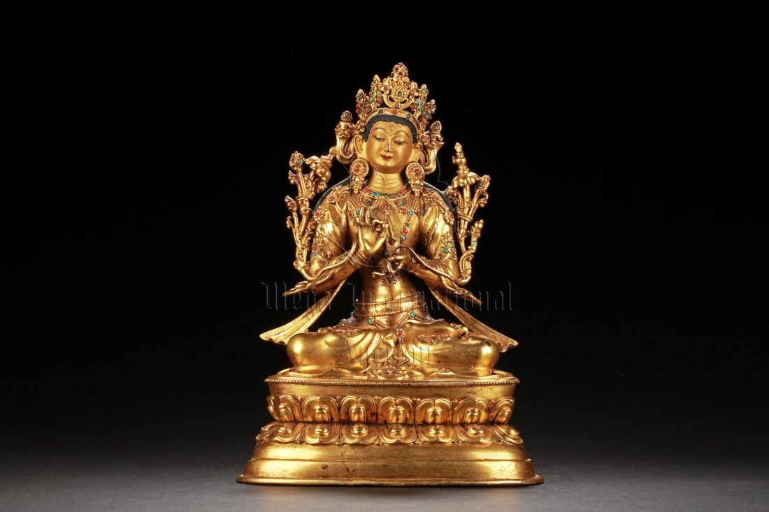 A solemn gilt bronze statue of Guanyin with four arms inlaid with precious stonesharbor auction inc4.4(13)$5,500(5 bids)5 days Left
