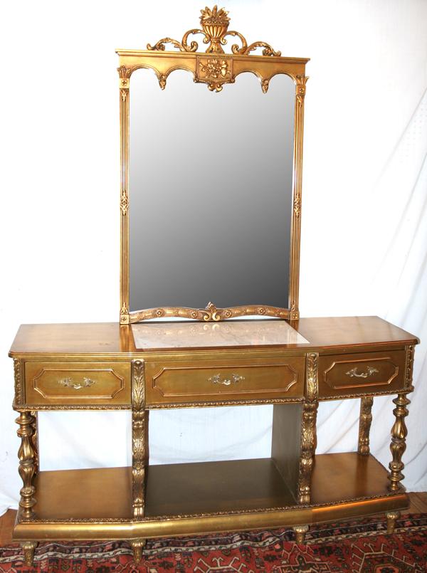 Magnificent Rare Vintage Neoclassical Italian Louis 16th Style Gilded Console. 61"x 22"x 32"h7 days LeftREGENCE STYLE ORMOLU MIRROR & MARBLE-TOP CONSOLE TABLEMar 29, 2026ITALIAN LOUIS XV STYLE MARBLE-TOP GILTWOOD CONSOLE TABLEMar 29, 2026ITALIAN LOUIS XV STYLE MARBLE-TOP GILTWOOD CONSOLE TABLEMar 29, 2026French Louis XVI Style Marble Top Console Table with Matching Mirror2 days LeftLOUIS XV STYLE MARBLE-TOP GILTWOOD CONSOLE TABLEMar 29, 2026(2) LOUIS XVI STYLE PORCELAIN-MOUNTED GILTWOOD CONSOLE TABLE & MIRRORMar 29, 2026FRENCH LOUIS XVI STYLE MARBLE-TOP PAINTED CONSOLE TABLEMar 29, 2026Bombay Outlet Italian Rococo Style Console Table - AS ISMar 29, 2026Vintage Sideboard with Marble Top and Mirror, 1920sRegency Style Silver Gilt Console Table with Faux Marble Top4 days LeftMaitland Smith Baroque Gold Gilt Console Table with Marble Top5 days LeftAntique French Louis XV Style Gilt Brass Console Table with Onyx Marble TopMar 27, 2026Venetian Style Decorated Dresser with Wall MirrorMar 19, 2026Maitland Smith Silver Gold Gilt Neoclassical Console Table Faux Marble Top3 days LeftMaitland Smith Regency Style Console Table with Marble Top4 days Left