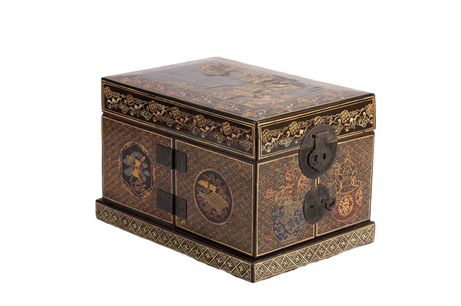 GILT DECORATED LACQUERED TREASURE BOX