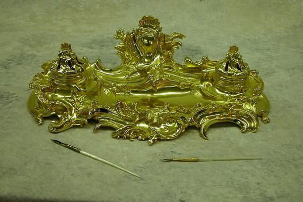Ornate Gilt Metal Girandole Candle Holders19th c. English Brass Inkwell & Writing Desk Set c.188019TH C. FRENCH CHAMPLEVE ENAMEL INKWELLFeb 22, 2026French Gilt Bronze InkwellFeb 26, 2026Victorian silverplate inkstand6 days LeftArt Nouveau inkwell, European School, circa 1900Feb 25, 202619TH C HEAVILY CARVED GOLD LEAF ROUGE MARBLE TOP CONSOLE TABLE6 days LeftAntique Brass Standish Inkwell With CandleholdersFeb 28, 2026Large 19th C. French Alphonse Giroux inkwell2 days LeftFRENCH DORE BRONZE AND SEVRES STYLE PORCELAIN INKWELLFeb 22, 202619th C. French Large Bronze & Porcelain Inkwell2 days LeftVintage Art Nouveau Brass InkwellFeb 23, 2026French Gilt Bronze Figural Inkwell2 days Left19TH C. ORMOLU MOUNTED BOULLE INKWELLFeb 22, 2026Vintage Solid Brass Ornate Triple InkwellFeb 28, 2026Antique Victorian Brass Inkwell Desk Set Circa 1870-1900Feb 23, 2026