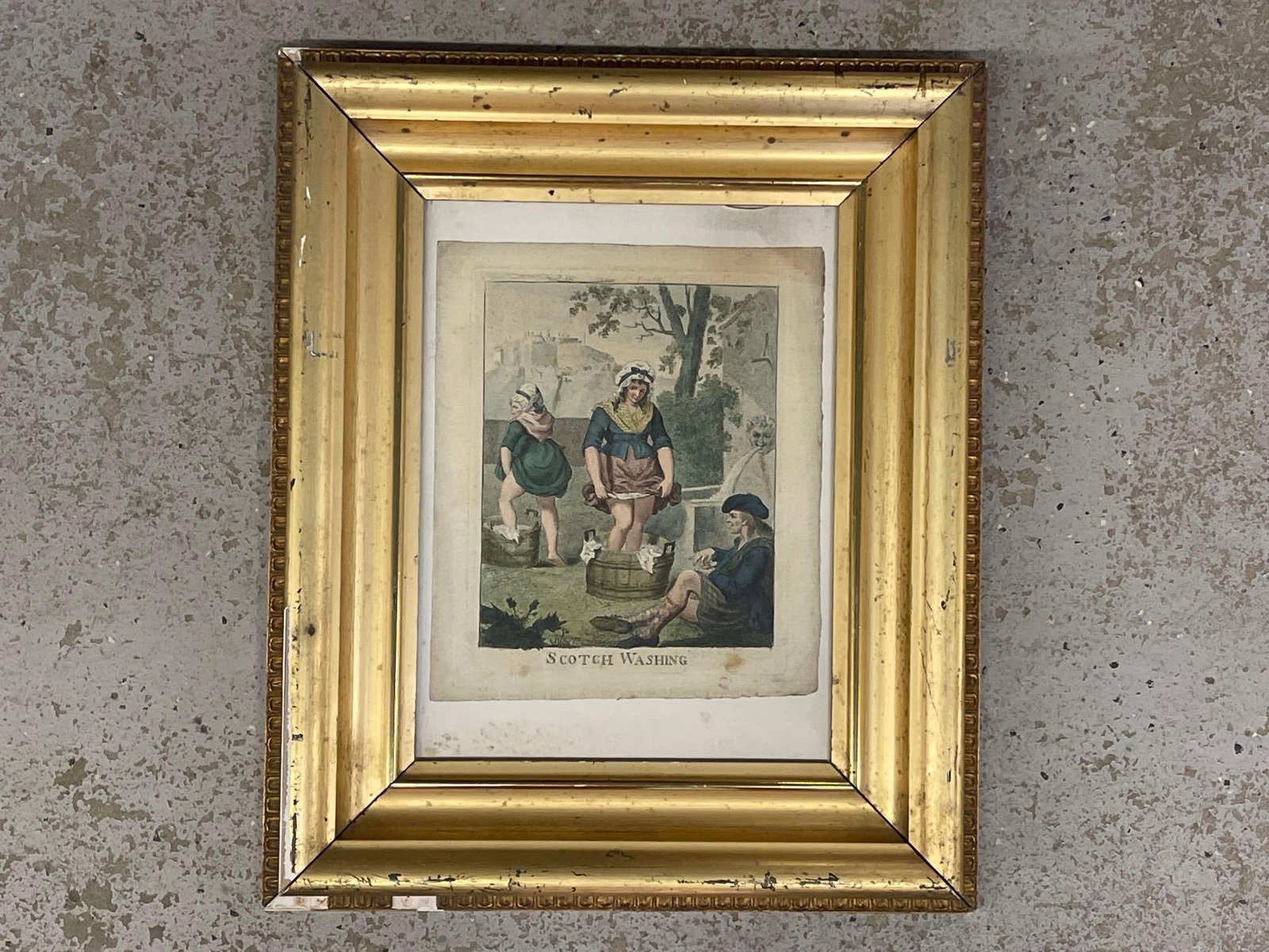 Gilt Framed Etching, Scotch Washing
