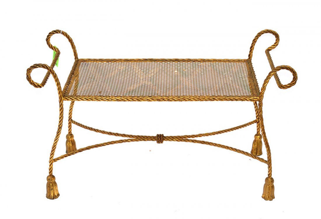 Vintage Italian Hollywood Regency Gokd Gilt Metal Tassel Accent Bench FootstoolChairish Auctions4.5(10.4k)$360