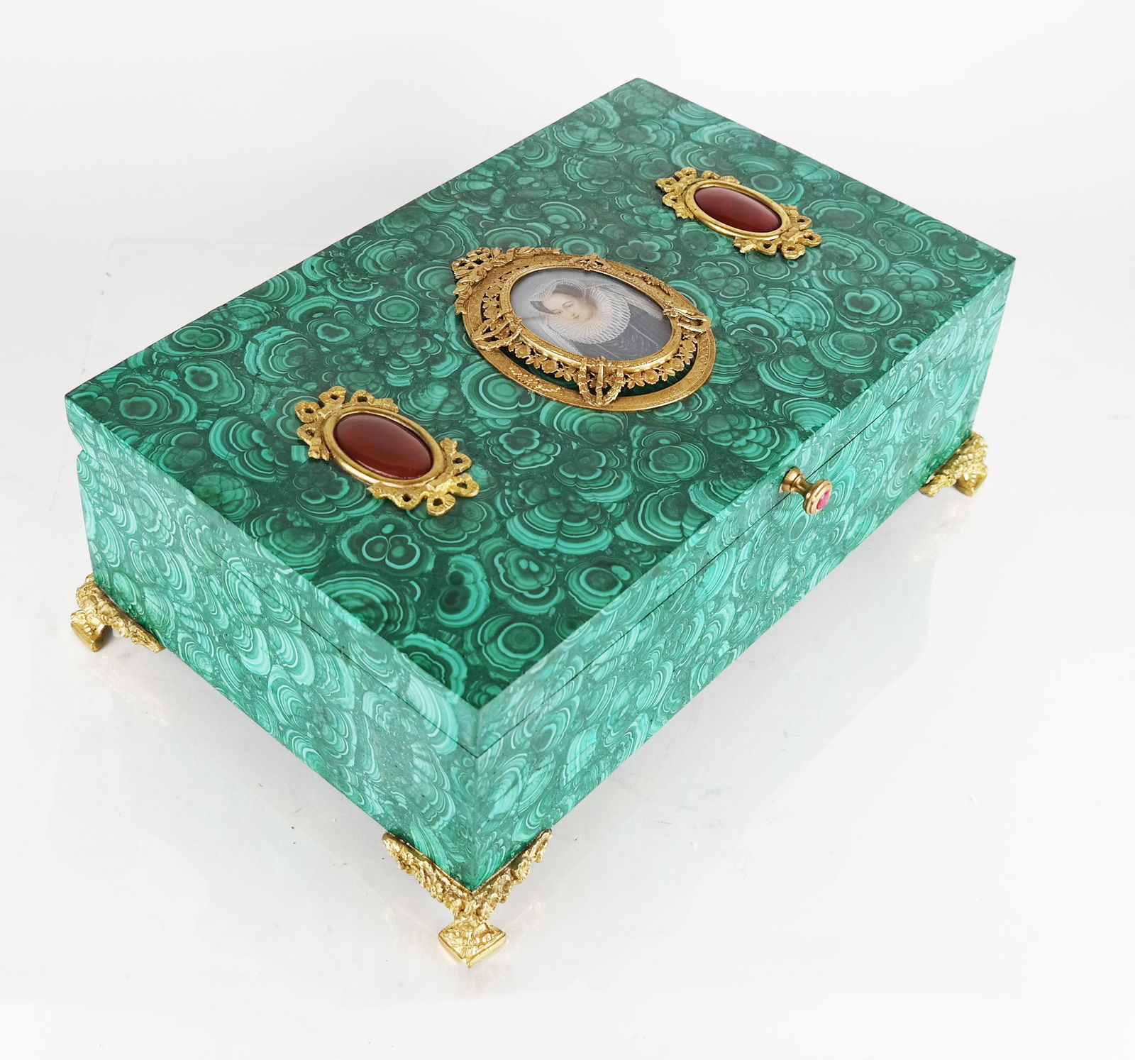 Gilt Metal Mounted Malachite Veneered Table Box