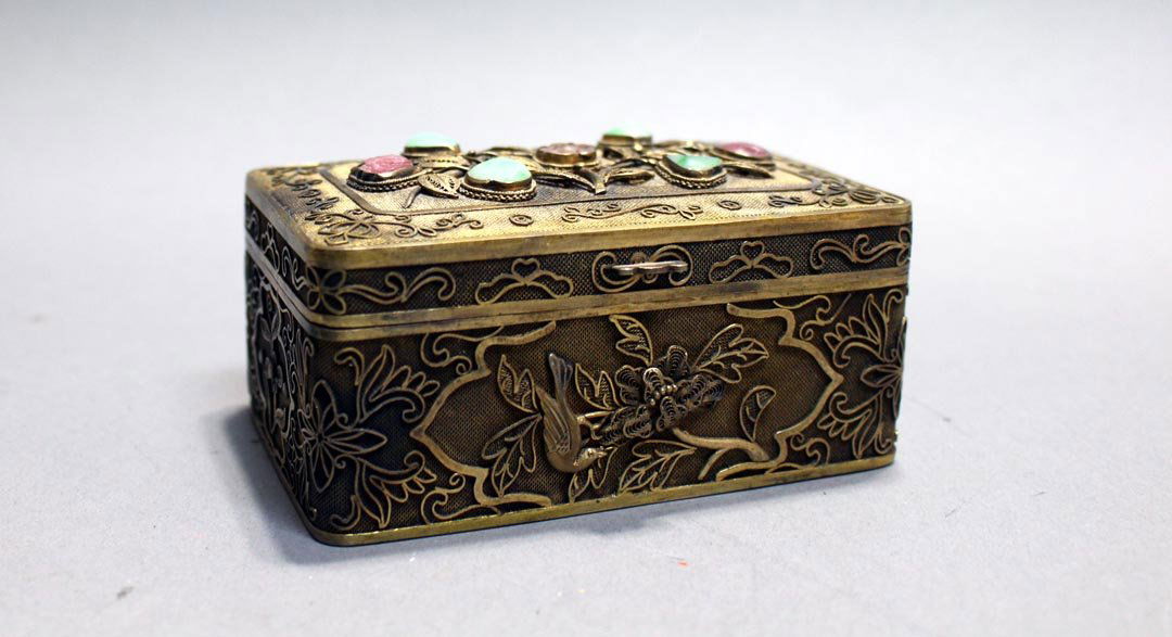 Belgian Brass Casket Box5 days LeftA GILT SILVER FILIGREE ENAMELLED COVERED BOX INLAID WITH HETIAN JADEMar 05, 2026GEM-ENCRUSTED PARCEL-GILT & SILVERED FILIGREE TABLE BOX17 hrs LeftA GILT SILVER FILIGREE INLAID GEMSTONE AND JADEITE FLOWERPOT ORNAMENTMar 05, 2026An Exquisite Silver Inlaid Gems Flower Pattern Box3 days LeftTIBETAN STYLE FILIGREE METAL & GEM TRINKET BOX 5"2 days LeftA GILT SILVER FILIGREE ENAMELLED COVERED BOX INLAID WITH JADEITEMar 05, 2026A silver-gilt floral lid box from the Qing DynastyMar 22, 2026A GILT BRONZE COVERED BOX WITH INTERLACED FLORAL DESIGN795 Lots AwayA Rare Gilt Silver Dragon Pattern Cover Box,Inlaid Gems7 days LeftA FINE HARDSTONES INLAID SILVER-GILT BOX WITH COVERMar 01, 2026An Exquisite Gilt Bronze Flower Pattern Box with Cover,Inlaid GemsMar 20, 2026Vintage Gold Gilded Heavy Copper Coffin Trinket BoxMar 17, 2026An Exquisite Silver Inlaid Gems Lion Pattern Box3 days LeftAn Exquisite Silver Inlaid Gems Flower Pattern BoxMar 04, 2026A Exquisite Gilt Bronze Inlaid White Jade Lotus Pattern Flower and Bird Pattern BoxMar 18, 2026