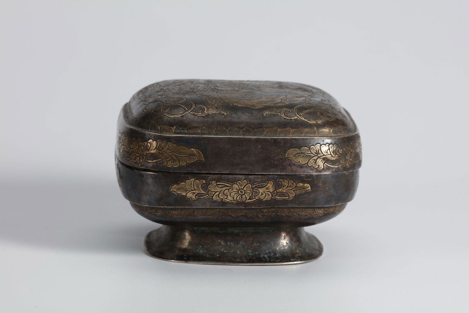 Gilt Silver Square Box with Double Phoenix Birds Design