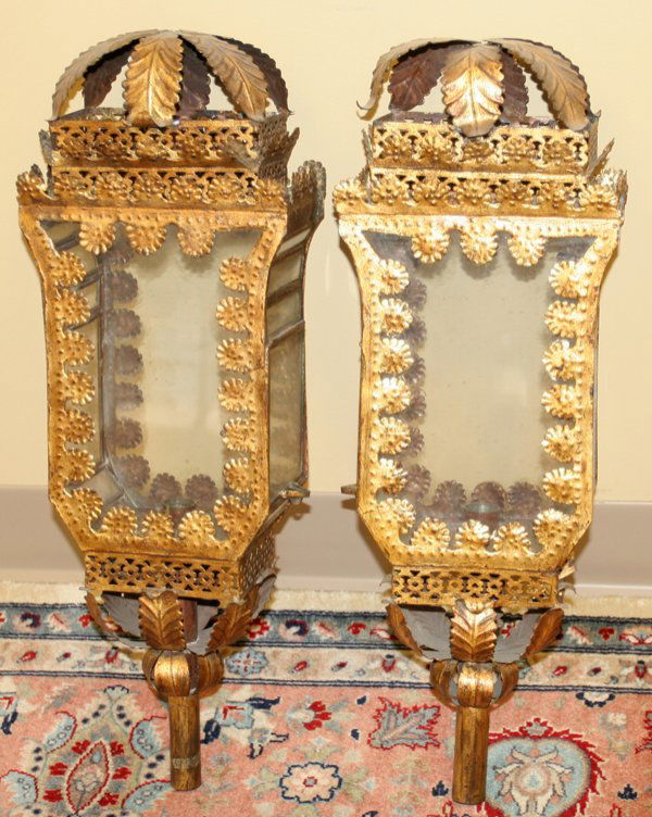 GILT TIN LANTERNS, PAIR, H 22"