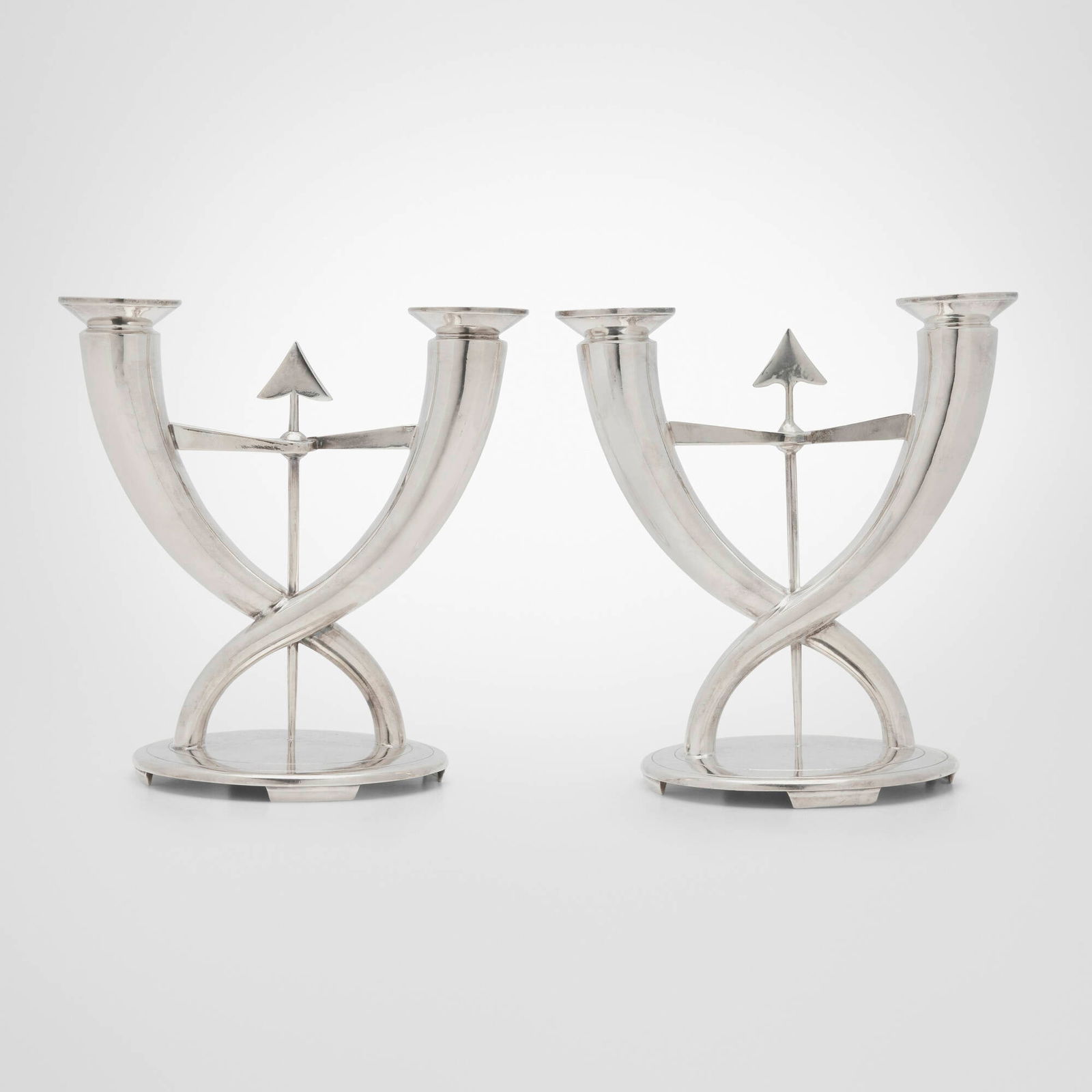 Fine Topazio 925 Sterling Silver Handmade 2 Light Candelabra