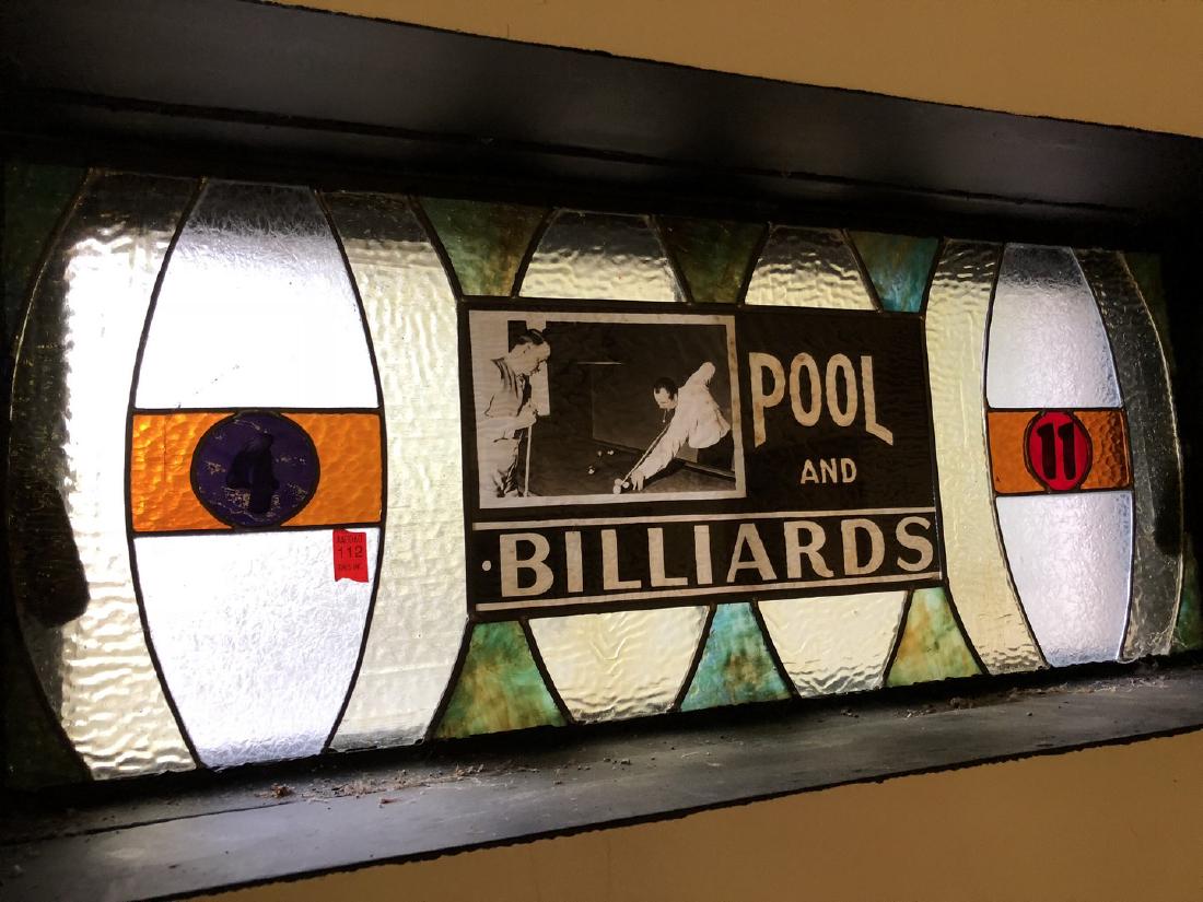 SoldLarge Stained and Beveled Glass Window With LadyAmerican antique stained and beveled to the point glass window with a painted and fired middle panel depicting a lady with a mandolin. Circa 1890. 66"h x 48"See Sold Price