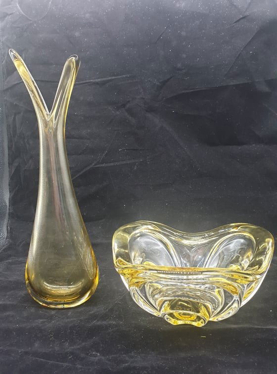 Two Vintage Yellow Depression Glass ItemsMar 01, 2026Jean-Claude Novaro- Handmade Glass "Flat Handle Vase, Lime & Yellow"6 days LeftMid 20th c. Large English Cut Glass Footed VaseMidCentury - Modern Crystal Art Glass Vase3 days LeftSculptural and Curvilinear Art Deco Translucent Glass Bowl By Daum, FranceFeb 25, 20262 Vintage Pressed Glass VasesMar 04, 2026James Harmon, art glass bowl and vase4 days LeftKOSTA BODA, TWO ARTIST SIGNED GLASS VESSELS2 days LeftPr. of Chinese Yellow Peking Glass VasesFeb 28, 2026Pr. of Chinese Yellow Peking Glass VasesFeb 28, 2026Chinese Yellow Peking Glass VaseFeb 24, 2026Vintage Art Glass VaseFeb 23, 2026Mariusz Rynkiewicz Art Glass Vase SIGNED [Amber]Feb 25, 2026Bohemian Style Gilt Glass Vase A7 days LeftVintage Libs Glass of Bohemia Crystal Bowl & VaseMar 06, 2026Cut Crystal Footed Centerpiece Bowl And Vase Possibly By WaterfordFeb 26, 2026
