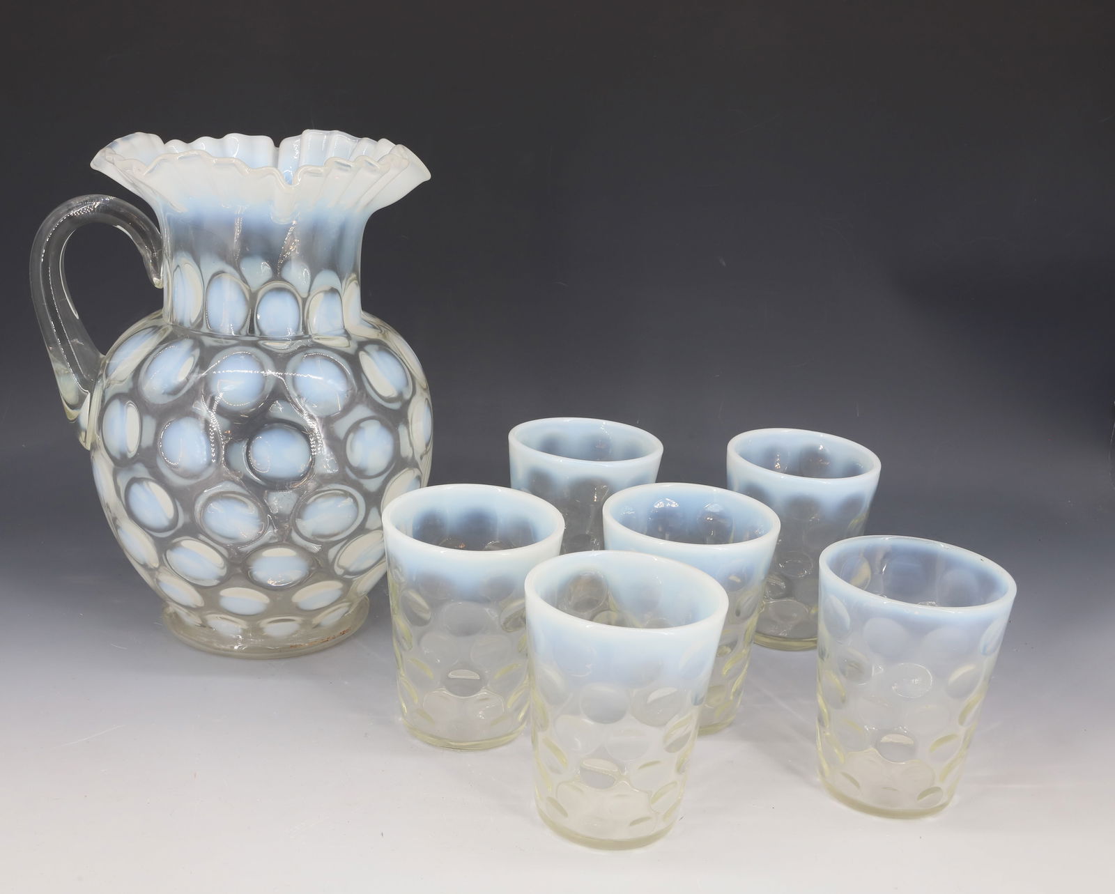 GLASS COINSPOT PITCHER / GLASSES