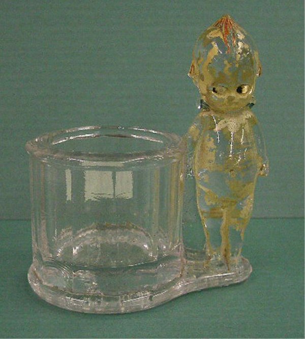 Glass Kewpie Candy Container/Toothpick Holder