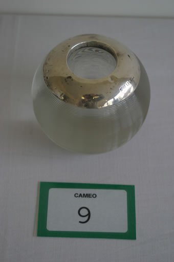 Lot Of Seven Weighted & With Glass Sterling Silver ItemsFeb 28, 2026A silver-mounted spherical glass vase Asprey, London 2009, also stamped Asprey LONDONLarge Vintage Gass PaperweightTall Hammered Metal Floor VaseFeb 26, 2026Antique English Victorian Match Striker with Sterling Silver RimFeb 22, 2026.800 Silver Bowl with Glass InsertFeb 22, 2026Cut Crystal Bowl with Silver RimFeb 28, 2026A Large Murano-Style Art Glass Jellyfish Paperweight, Oval Form4 days LeftHoward Elliott Small Sivas Glass Vase with Polished Silver Accents4 days LeftPressed Glass Bowl with Ribbed Design4 days LeftUnger Floral Sterling Silver and Cut Crystal Powder Jar 3 1/4" Tall4 days LeftSterling Silver & Crystal Pumpkin Glue Jar7 days LeftA silver-mounted glass cocktail shaker maker's mark W&P, in a vertical lozenge punch, Birmingham...Perfume Bottle, Brilliant Period Cut Glass6 days LeftSterling Silver Beaded Cigar Jar with Axe Emblem 7" TallMar 04, 2026Cut Crystal Bowl with Silver RimFeb 26, 2026